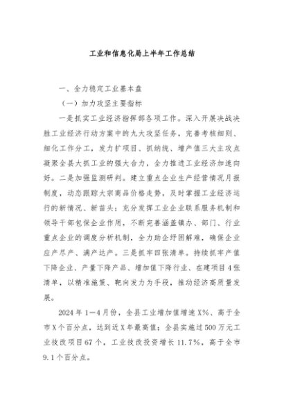 / 【七哥公文】2024年:工业和信息化局上半年工作总结+更多免费公文+VX:QiGeGongWen2024