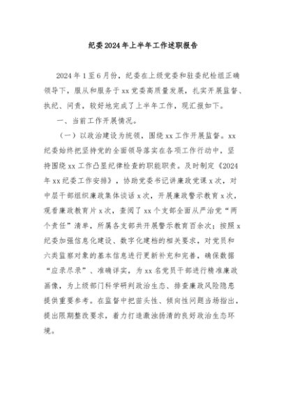 / 【七哥公文】2024年:纪委2024年上半年工作述职报告+更多免费公文+VX:QiGeGongWen2024
