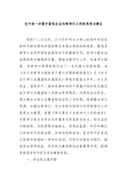 / 【七哥公文】2024年:关于进一步提升国有企业内部审计工作的思考与建议+更多免费公文+VX:QiGeGongWen2024