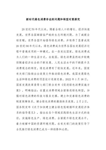 【七哥公文】2024年:新时代绿色消费存在的问题和转型对策探究+更多免费公文+VX:QiGeGongWen2024