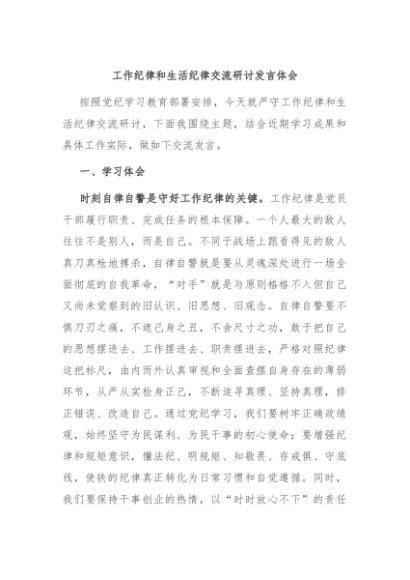 / 【七哥公文】2024年:工作纪律和生活纪律交流研讨发言体会+更多免费公文+VX:QiGeGongWen2024