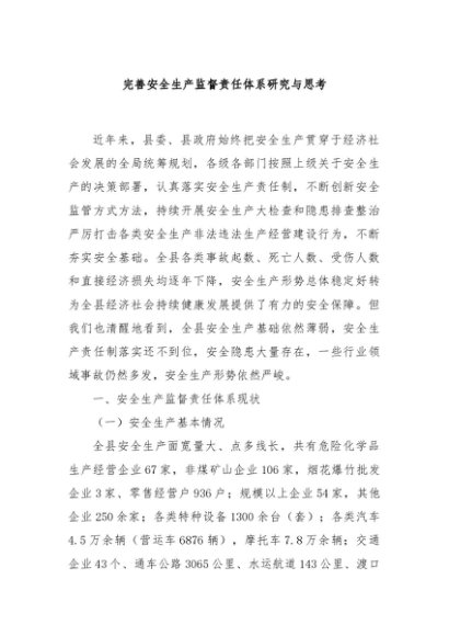 / 【七哥公文】2024年:完善安全生产监督责任体系研究与思考+更多免费公文+VX:QiGeGongWen2024