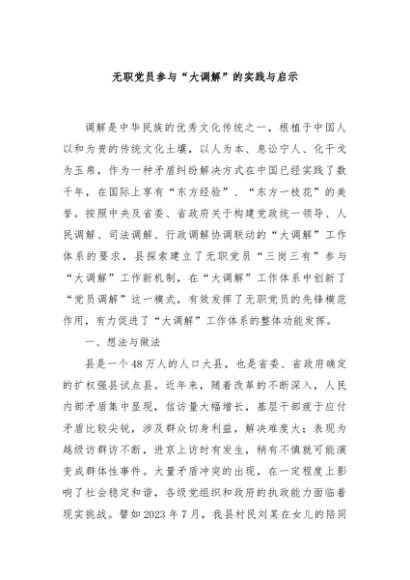 / 【七哥公文】2024年:无职党员参与“大调解”的实践与启示+更多免费公文+VX:QiGeGongWen2024