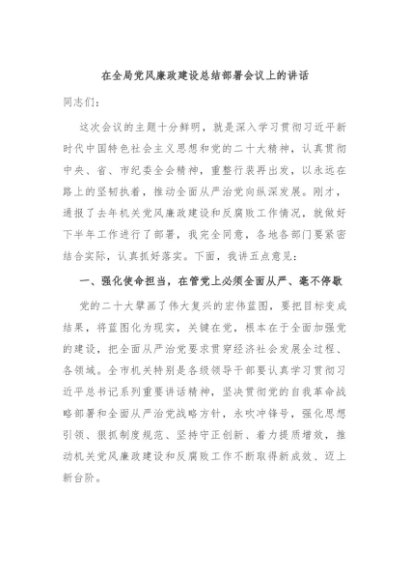 / 【七哥公文】2024年:在全局党风廉政建设总结部署会议上的讲话+更多免费公文+VX:QiGeGongWen2024