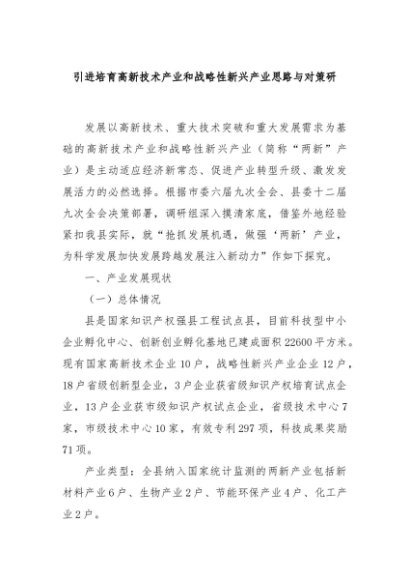 【七哥公文】2024年:引进培育高新技术产业和战略性新兴产业思路与对策研+更多免费公文+VX:QiGeGongWen2024