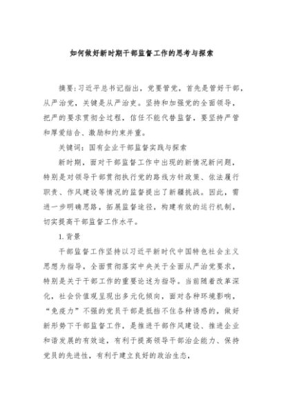 / 【七哥公文】2024年:如何做好新时期干部监督工作的思考与探索+更多免费公文+VX:QiGeGongWen2024