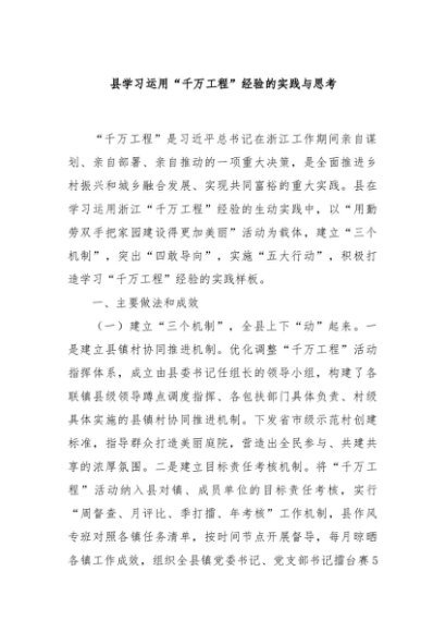 【七哥公文】2024年:县学习运用“千万工程”经验的实践与思考+更多免费公文+VX:QiGeGongWen2024