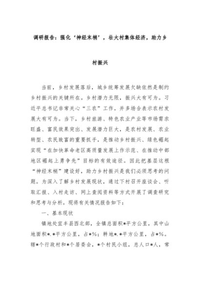 【七哥公文】2024年:调研报告:强化‘神经末梢’,壮大村集体经济,助力乡村振兴+更多免费公文+VX:QiGeGongWen2024