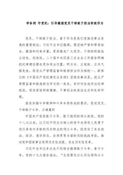 【七哥公文】2024年:学条例 守党纪:引导激励党员干部敢于担当积极作为+更多免费公文+VX:QiGeGongWen2024