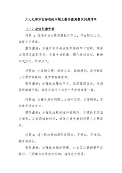 / 【七哥公文】2024年:六大纪律方面存在的问题及整改措施整改问题清单+更多免费公文+VX:QiGeGongWen2024