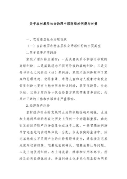 / 【七哥公文】2024年:关于农村基层社会治理中联防联治问题与对策+更多免费公文+VX:QiGeGongWen2024