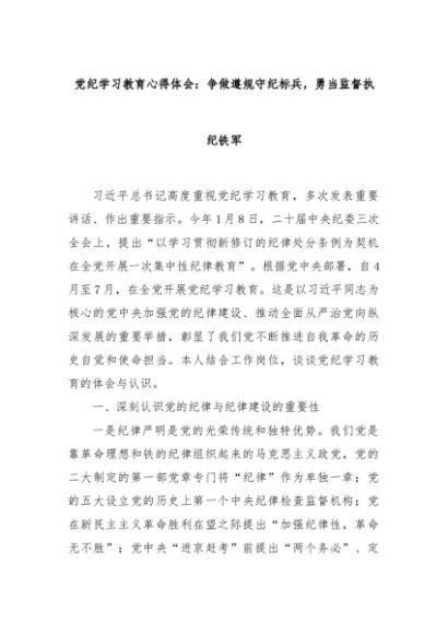 【七哥公文】2024年:党纪学习教育心得体会:争做遵规守纪标兵,勇当监督执纪铁军+更多免费公文+VX:QiGeGongWen2024