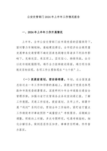 / 【七哥公文】2024年:公安交管部门2024年上半年工作情况报告+更多免费公文+VX:QiGeGongWen2024