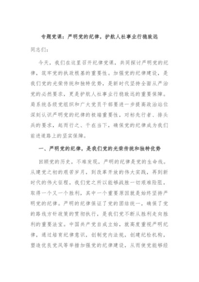 / 【七哥公文】2024年:专题党课:严明党的纪律,护航人社事业行稳致远+更多免费公文+VX:QiGeGongWen2024