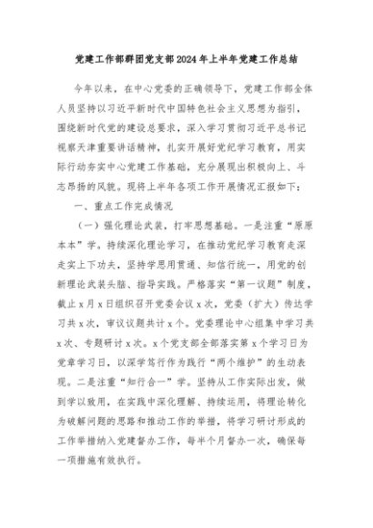 / 【七哥公文】2024年:党建工作部群团党支部2024年上半年党建工作总结+更多免费公文+VX:QiGeGongWen2024