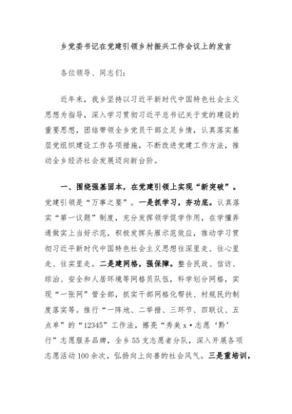 / 【七哥公文】2024年:乡党委书记在党建引领乡村振兴工作会议上的发言+更多免费公文+VX:QiGeGongWen2024