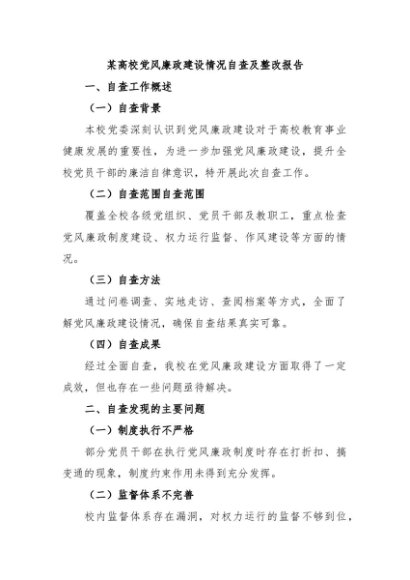 / 【七哥公文】2024年:某高校党风廉政建设情况自查及整改报告+更多免费公文+VX:QiGeGongWen2024
