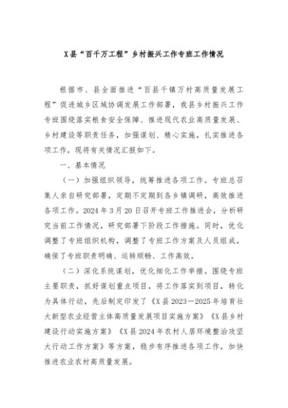 / 【七哥公文】2024年:X县“百千万工程”乡村振兴工作专班工作情况+更多免费公文+VX:QiGeGongWen2024