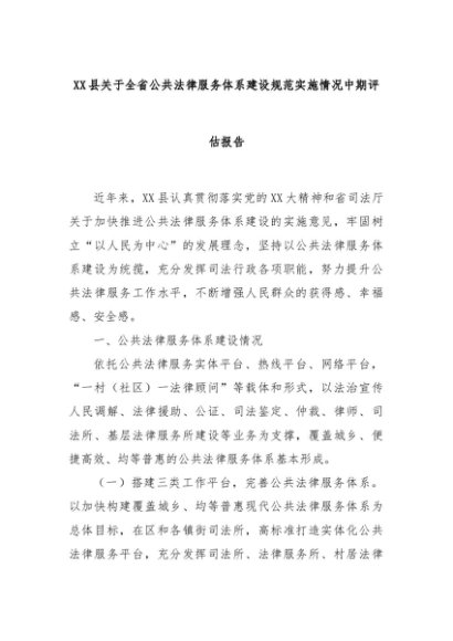 【七哥公文】2024年:XX县关于全省公共法律服务体系建设规范实施情况中期评估报告+更多免费公文+VX:QiGeGongWen2024