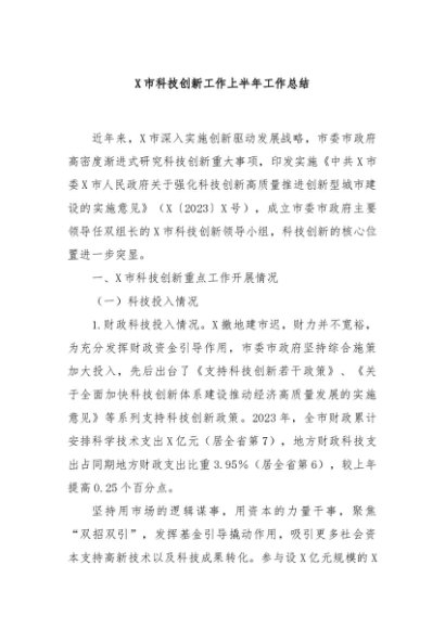 / 【七哥公文】2024年:X市科技创新工作上半年工作总结+更多免费公文+VX:QiGeGongWen2024