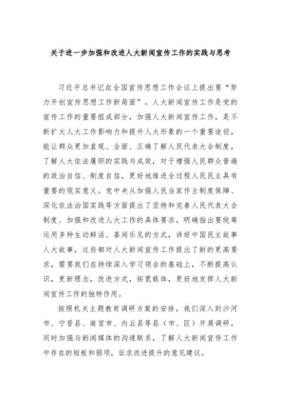 / 【七哥公文】2024年:关于进一步加强和改进人大新闻宣传工作的实践与思考+更多免费公文+VX:QiGeGongWen2024