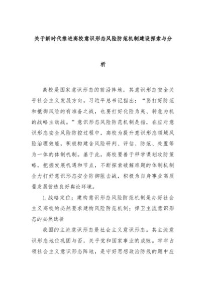 【七哥公文】2024年:关于新时代推进高校意识形态风险防范机制建设探索与分析+更多免费公文+VX:QiGeGongWen2024