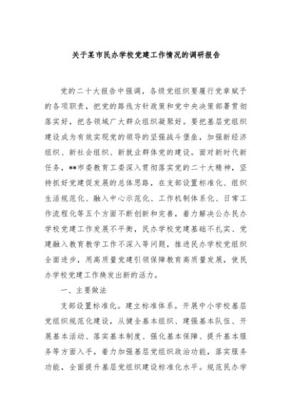 / 【七哥公文】2024年:关于某市民办学校党建工作情况的调研报告+更多免费公文+VX:QiGeGongWen2024