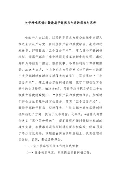 / 【七哥公文】2024年:关于精准容错纠错激励干部担当作为的探索与思考+更多免费公文+VX:QiGeGongWen2024