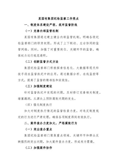 / 【七哥公文】2024年:某国有集团纪检监察工作亮点+更多免费公文+VX:QiGeGongWen2024