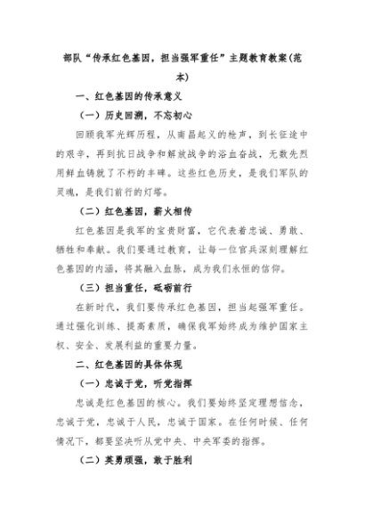 【七哥公文】2024年:部队“传承红色基因,担当强军重任”主题教育教案(范本)+更多免费公文+VX:QiGeGongWen2024