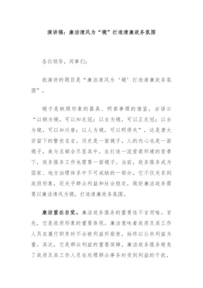/ 【七哥公文】2024年:演讲稿:廉洁清风为“镜”打造清廉政务氛围+更多免费公文+VX:QiGeGongWen2024
