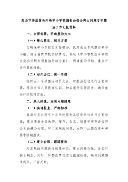 【七哥公文】2024年:某县市场监管局开展中小学校园食品安全突出问题专项整治工作汇报材料+更多免费公文+VX:QiGeGongWen2024