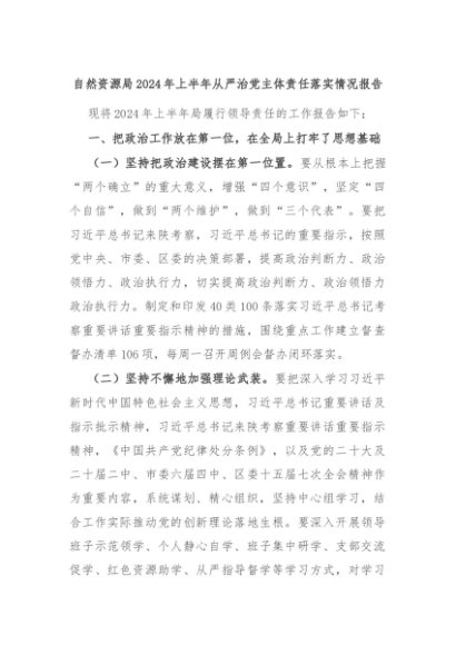 【七哥公文】2024年:自然资源局2024年上半年从严治党主体责任落实情况报告+更多免费公文+VX:QiGeGongWen2024