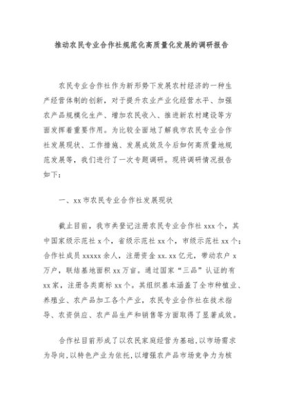 / 【七哥公文】2024年:推动农民专业合作社规范化高质量化发展的调研报告+更多免费公文+VX:QiGeGongWen2024