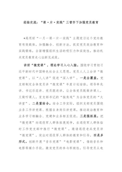 / 【七哥公文】2024年:经验交流:“课·片·实践”三管齐下加强党员教育+更多免费公文+VX:QiGeGongWen2024