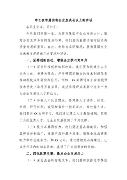 / 【七哥公文】2024年:市长在市属国有企业座谈会议上的讲话+更多免费公文+VX:QiGeGongWen2024