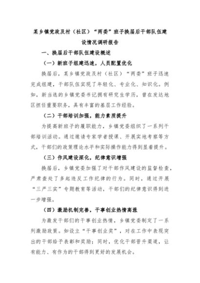 【七哥公文】2024年:某乡镇党政及村(社区)“两委”班子换届后干部队伍建设情况调研报告+更多免费公文+VX:QiGeGongWen2024