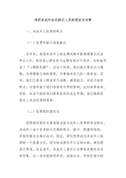 / 【七哥公文】2024年:浅析未成年社区矫正人员的现状及对策+更多免费公文+VX:QiGeGongWen2024
