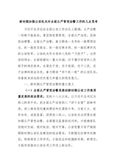 【七哥公文】2024年:新时期加强公安机关对全面从严管党治警工作的几点思考+更多免费公文+VX:QiGeGongWen2024