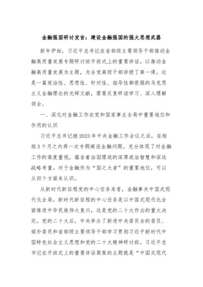 / 【七哥公文】2024年:金融强国研讨发言:建设金融强国的强大思想武器+更多免费公文+VX:QiGeGongWen2024