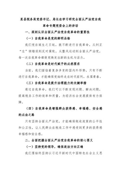 【七哥公文】2024年:某县税务局党委书记、局长在学习研究全面从严治党自我革命专题党委会上的讲话+更多免费公文+VX:QiGeGongWen2024