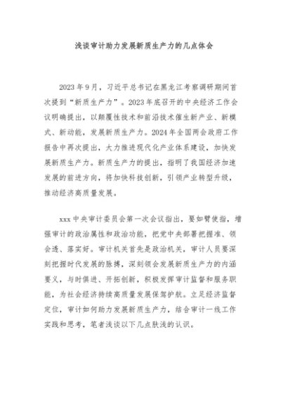 / 【七哥公文】2024年:浅谈审计助力发展新质生产力的几点体会+更多免费公文+VX:QiGeGongWen2024