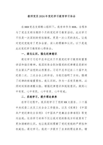 【七哥公文】2024年:教师党员2024年党纪学习教育学习体会+更多免费公文+VX:QiGeGongWen2024