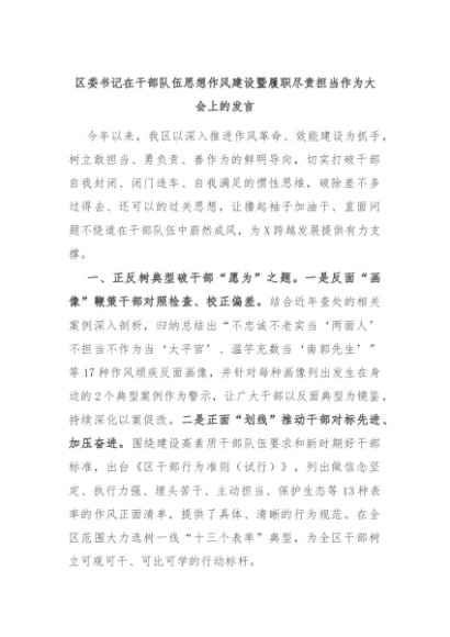 【七哥公文】2024年:区委书记在干部队伍思想作风建设暨履职尽责担当作为大会上的发言+更多免费公文+VX:QiGeGongWen2024