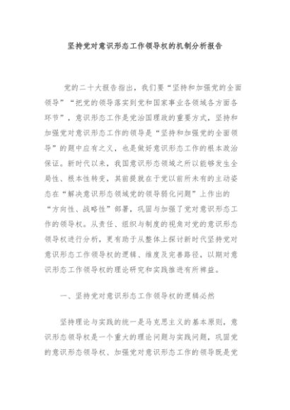 【七哥公文】2024年:坚持党对意识形态工作领导权的机制分析报告+更多免费公文+VX:QiGeGongWen2024