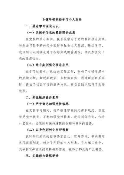 / 【七哥公文】2024年:乡镇干部党校学习个人总结+更多免费公文+VX:QiGeGongWen2024