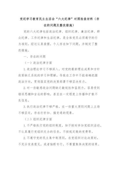 【七哥公文】2024年:党纪学习教育民主生活会“六大纪律”对照检查材料(存在的问题及整改措施)+更多免费公文+VX:QiGeGongWen2024