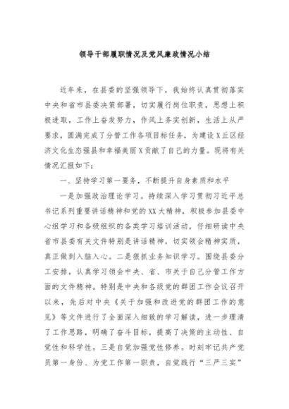 / 【七哥公文】2024年:领导干部履职情况及党风廉政情况小结+更多免费公文+VX:QiGeGongWen2024
