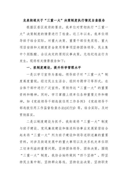 【七哥公文】2024年:2024街道关于“三重一大”决策制度执行情况自查报告+更多免费公文+VX:QiGeGongWen2024