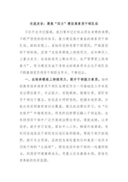 / 【七哥公文】2024年:交流发言:聚焦“四力”建设高素质干部队伍+更多免费公文+VX:QiGeGongWen2024